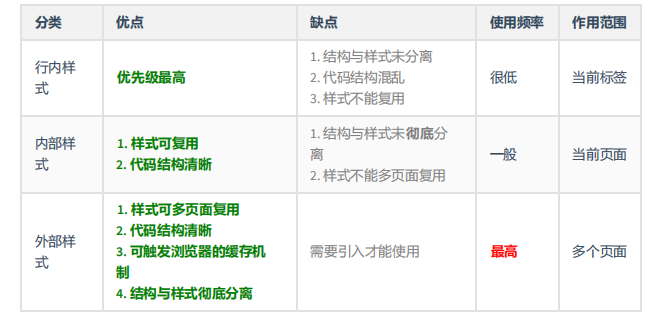 优先级规则:行内样式 > 内部样式 = 外部样式