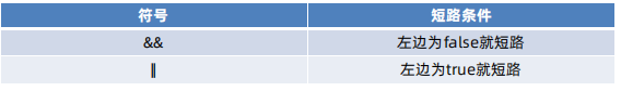 短路:只存在于 && 和 || 中,当满足一定条件会让右边代码不执行