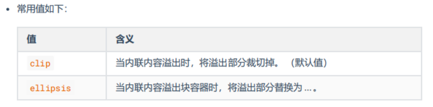 注意:要使得 text-overflow 属性生效,块容器必须显式定义 overflow 为非 visible
