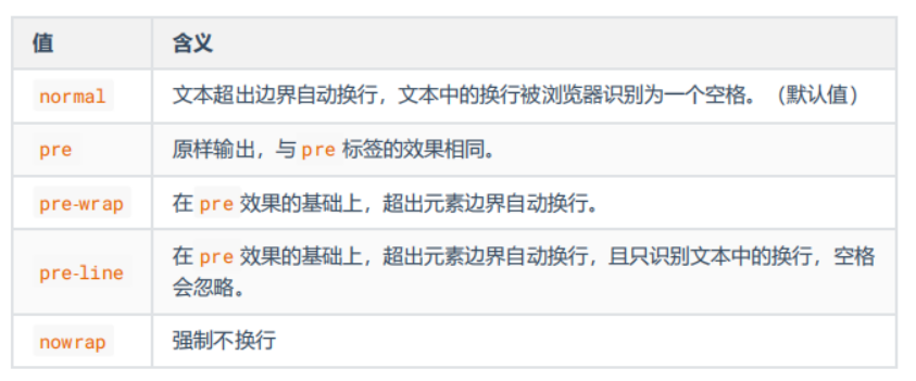 值, white-space 为 nowrap 值。