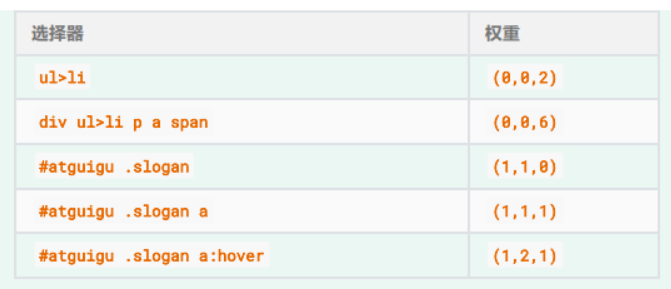 计算方式:每个选择器,都可计算出一组权重,格式为: (a,b,c)