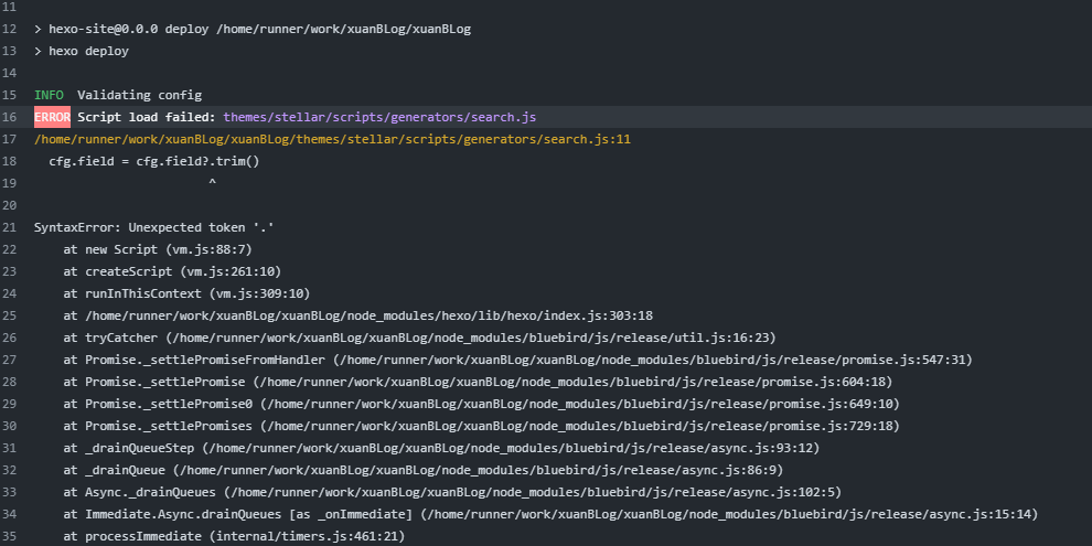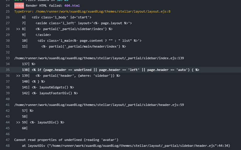 2、部署成功,但在workflow里deploy那一步有大量报错,说找不到avatar属性,一开始以为是部署流程只识别了_config.theme.yml,所以没有识别_config.yml里设置的avatar,遂修改_config.theme.yml,但没有起作用。