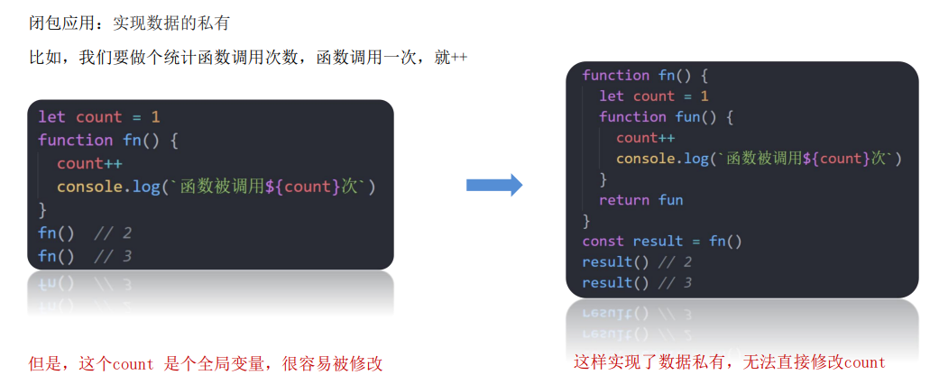 - 封闭数据,实现数据私有,外部也可以访问函数内部的变量