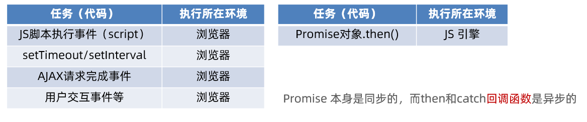 - 微任务:由 JS 引擎环境执行的异步代码