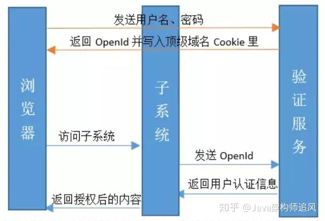 这种单点登录将用户的身份标识信息简化为OpenId存放于客户端,当用户登录某个子系统时,将OpenId传送到服务端,服务端根据OpenId构造用户验证信息,多用于C/S与B/S相结合的系统,属于有状态登录,流程如下: